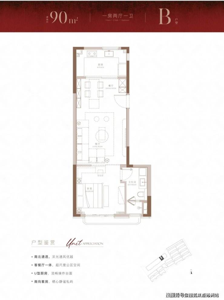 建面约90m²尊享1房户型,在100m²的基础上,进一步降低总价门槛的同时,也带来了设计上针对实用性的小巧思。