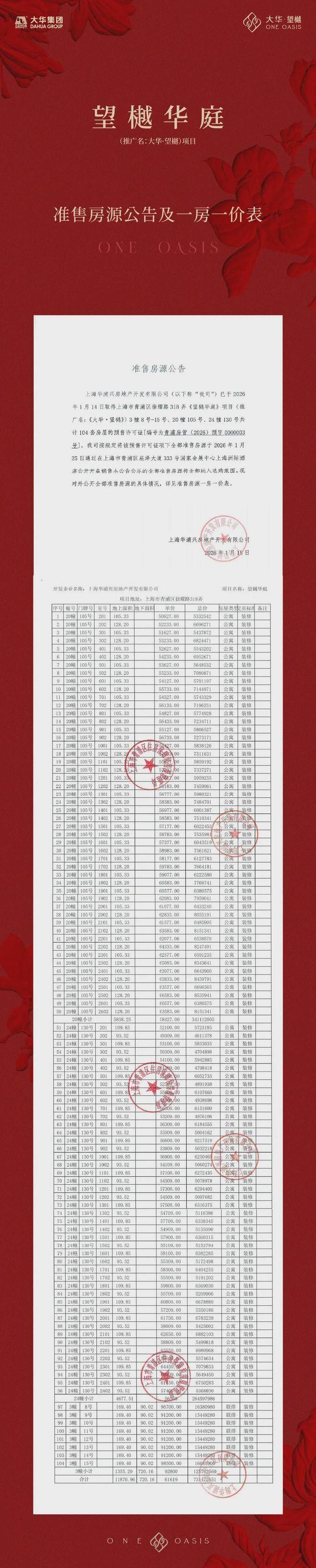 2025年6月19日,上海第五批次土拍中,大华集团以30.5亿元底价竞得青浦区QPS8-0101单元A18-12地块,楼板价26843元/㎡。