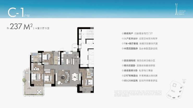 LARIMAR逐浪·B户型,动线流畅,视野开阔。