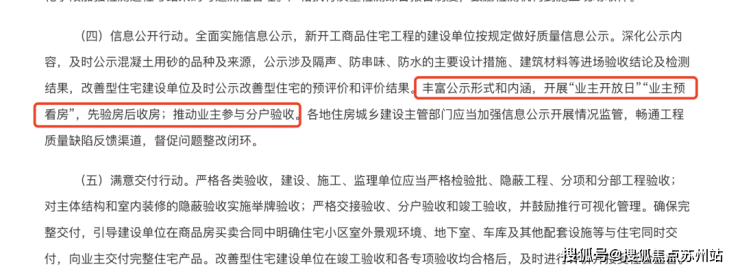 6月19日,江苏省住房和城乡建设厅正式印发《江苏省住宅工程品质提升动方案》,其中明确要求“开展‘业主开放日’‘业主预看房’,先验房后收房”,并推动业主参与分户验收。