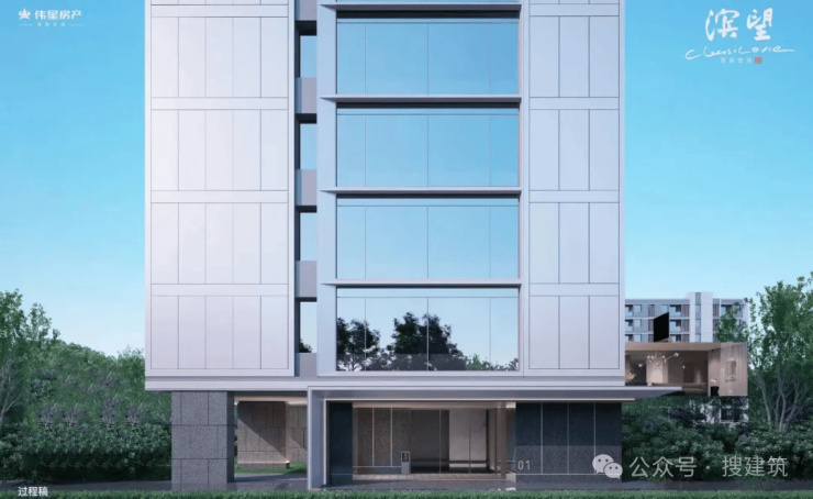 万科·朗拾滨屿项目在建筑上“卷”审美力与尊崇感,直接升级到四面铝板+公建化立面的配置。