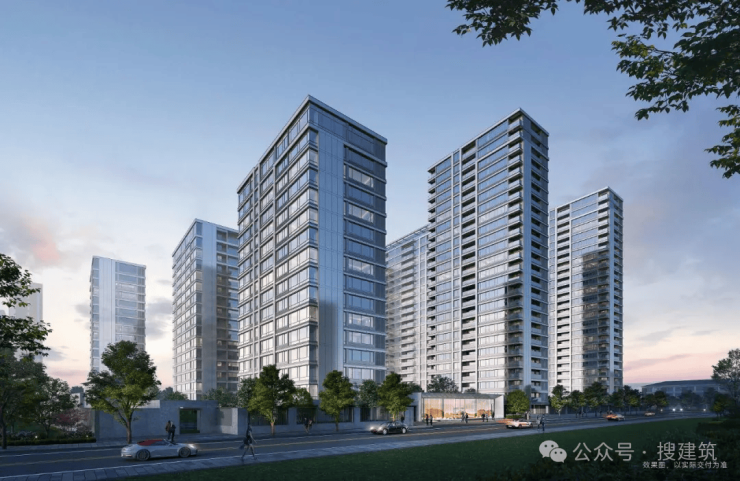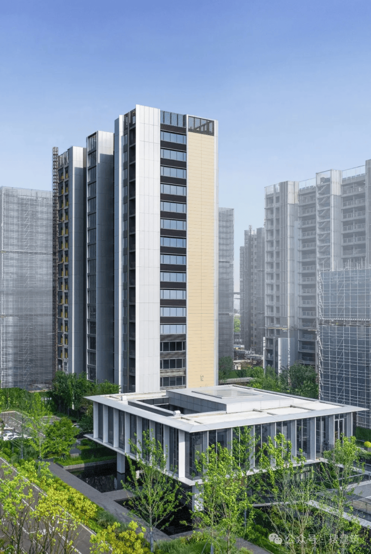 杭州江映云邸项目不惜成本,以高技、轻奢、自然为灵感,打造了四面铝板立面,纯公建化立面,在视觉上令人一眼难忘。