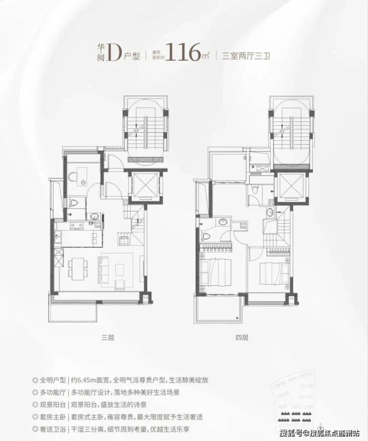 同样是3房2卫的配置,功能性与舒适度兼具。