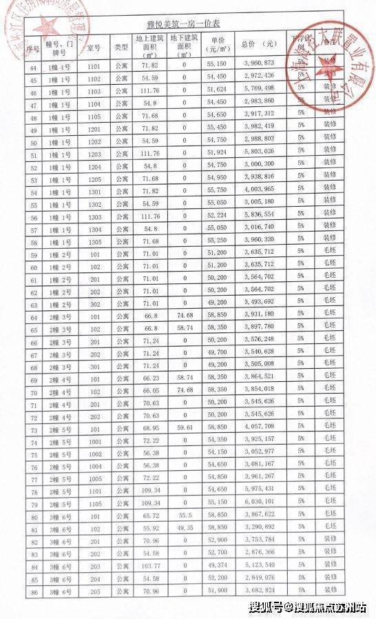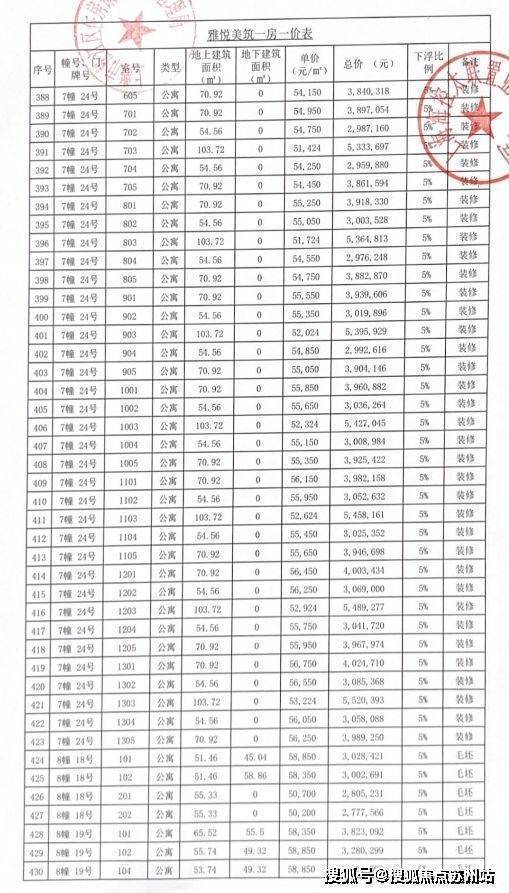 完整一房一价表如下: