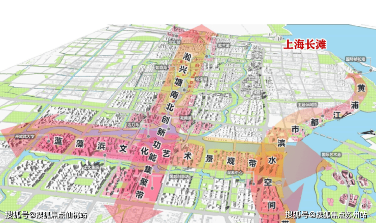大吴淞地区,规划能级再加码,开发范围扩容至约110平方公里,相当于约38.8个前滩,27.5个北外滩,17.7个东外滩;规划2035年常住人口约100.6万人,远超嘉定新城的70万规划人口。将打造超大型城市产业转型升级的样板标杆。