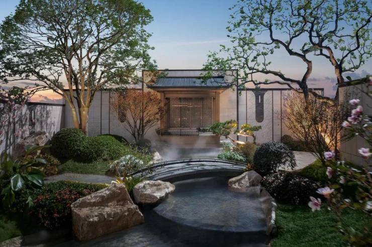 另外下沉式庭院的设计笔者很是喜欢,有飞云玉瀑、卧波平桥、老桩紫薇、百年朴树……漫步其中,能明显感受到到处洋溢着豪宅的尊贵气息。