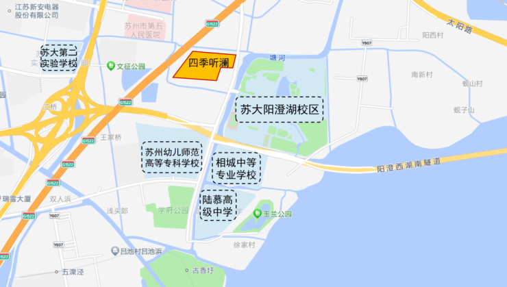 占据城市黄金交汇点 四季听澜的位置有多好?它就在园区金鸡湖往北第一站,被园区、高铁新城、青剑湖、相城主城四大核心CBD围在中间,去哪都方便。 出门就是中环北线、太阳路高架,未来阳澄湖星济隧道通了,一脚油门就能到园区湖西。更关键的是,项目紧挨着在建的地铁8号线古香圩站,能和1号线、2号线换乘,不开车也能畅行全城。