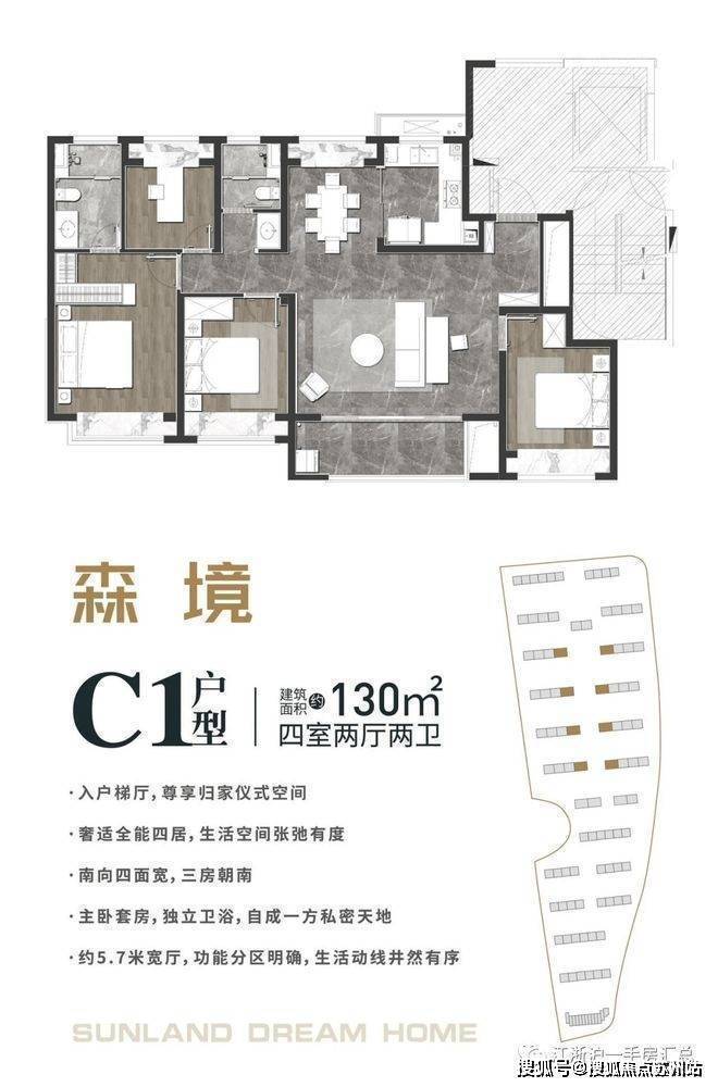 C1户型森境建筑面积约130㎡四室两厅两卫