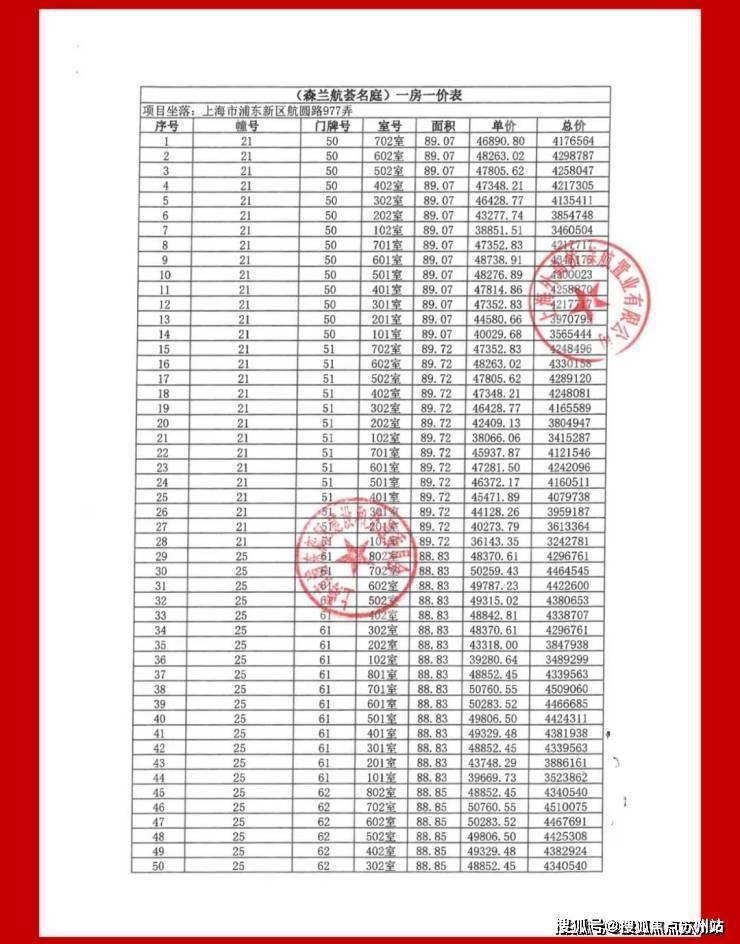 项目一房一价表▼