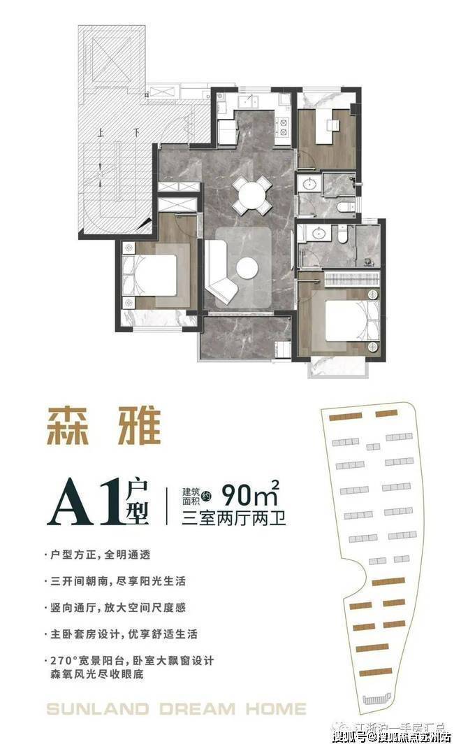 森兰·航荟名庭售楼处电话:400-8123-664【预约☎】要知道市场上大多数项目,建面约90㎡左右的户型都基本做2房设计,3房一般都要100㎡左右。「森兰·航荟名庭」建筑面积约90㎡A1户型不仅实现了3房功能性一步到位,还有2卫配置!降低当下置业成本的同时,给购房者未来在二手市场也能抢占先机!户型方面,该户型是南向大面宽设计,足以容纳主次卧+客厅三开间朝南,采光性能优异!客餐厅一体化设计,减少过道面积浪费,视野也更开阔。U字型厨房设计,更符合人们料理动线,利用率更高。客厅则是竖向通厅,方正明亮,可容纳全家的欢聚。