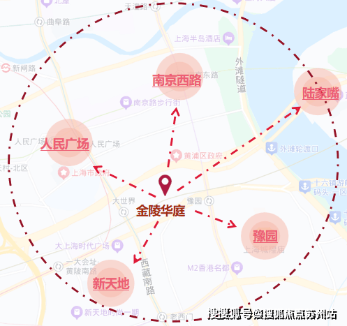 2公里内括淮海路、新天地、人民广场、外滩、陆家嘴等城市级CBD。