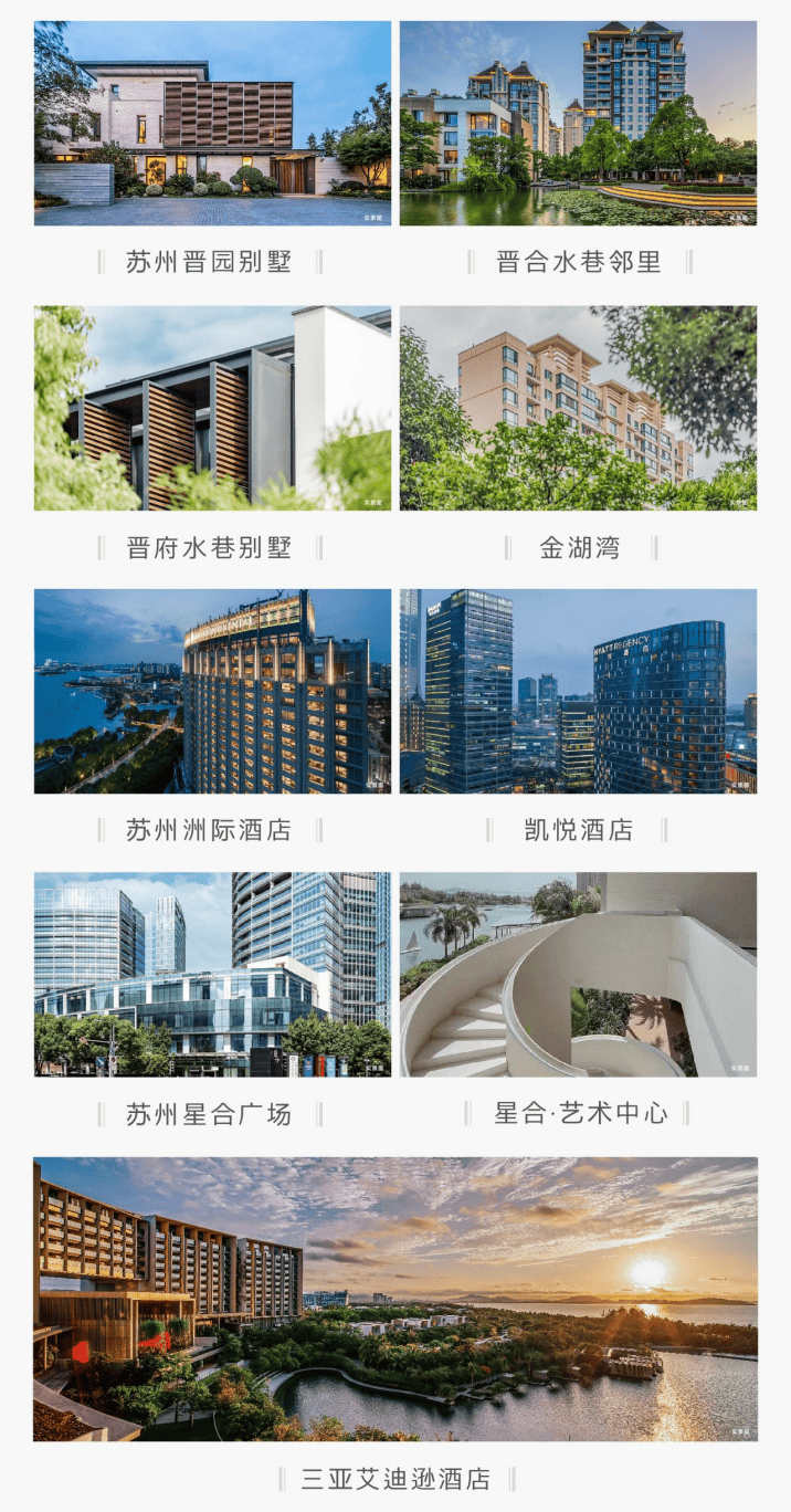【一个有深厚底蕴的品牌】 开发商星合控股,2003年就来到苏州,在园区深耕了超过20年。他们做的都是高端住宅、奢华酒店和潮流商业,像大家熟知的晋园别墅、金湖湾、洲际酒店、凯悦酒店等都是他们的作品。这个品牌懂高端,更懂如何为塔尖人群设计生活。