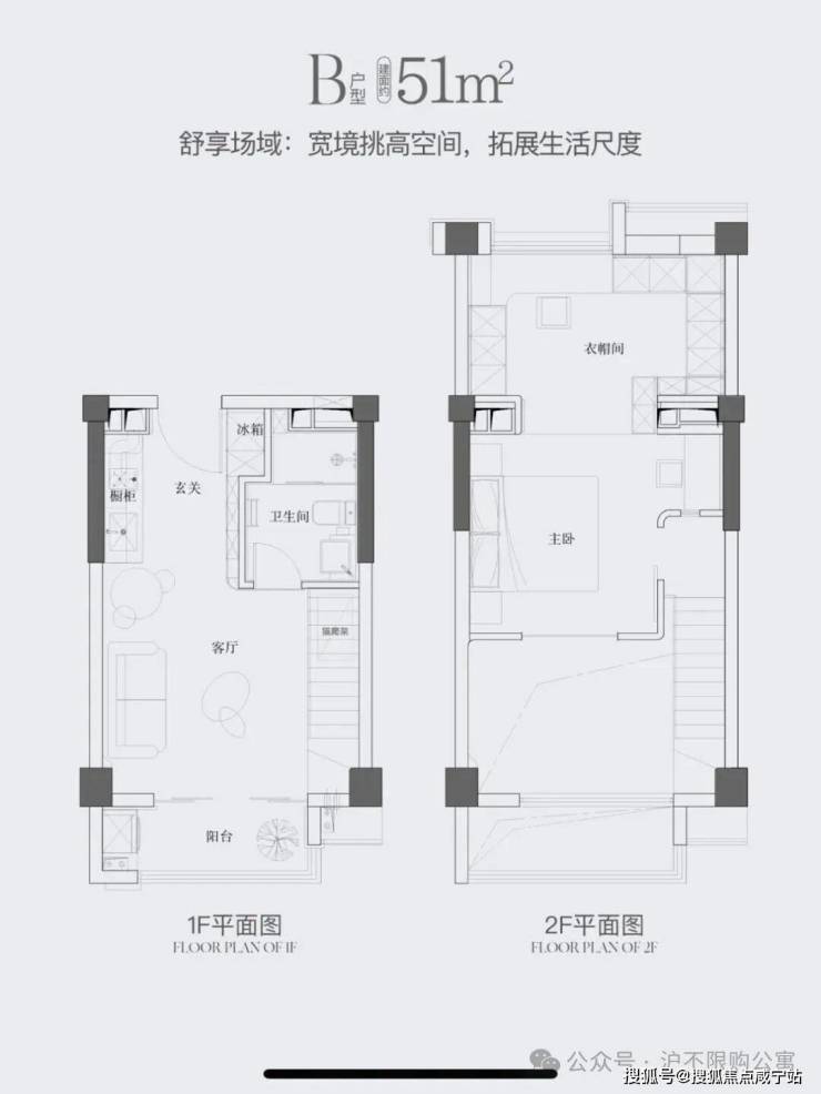 壹拾捌栋主打38—68㎡精装LOFT及平层公寓,层高4.5米(LOFT可隔两层),得房率超85%。主力户型包括:
