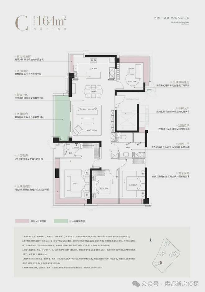 特别是笔者自己亲身看过两个开放样板间后,建面约164㎡的四房几乎可以说从户型设计、实用细节、装标配置、体感尺度全部拉满,堪称内环户型中真正的“六边形战士”.