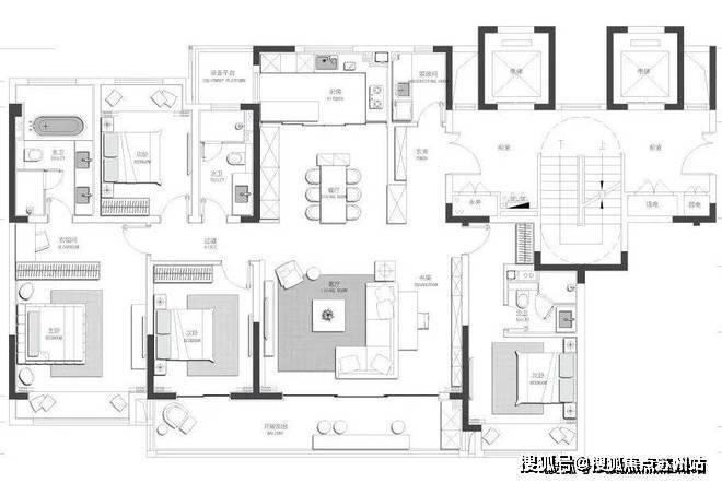 建筑面积约200㎡四房三卫户型