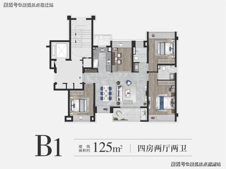 约125㎡4房2卫户型是约99㎡的升级版,四房更能保障业主的全生命周期需求。