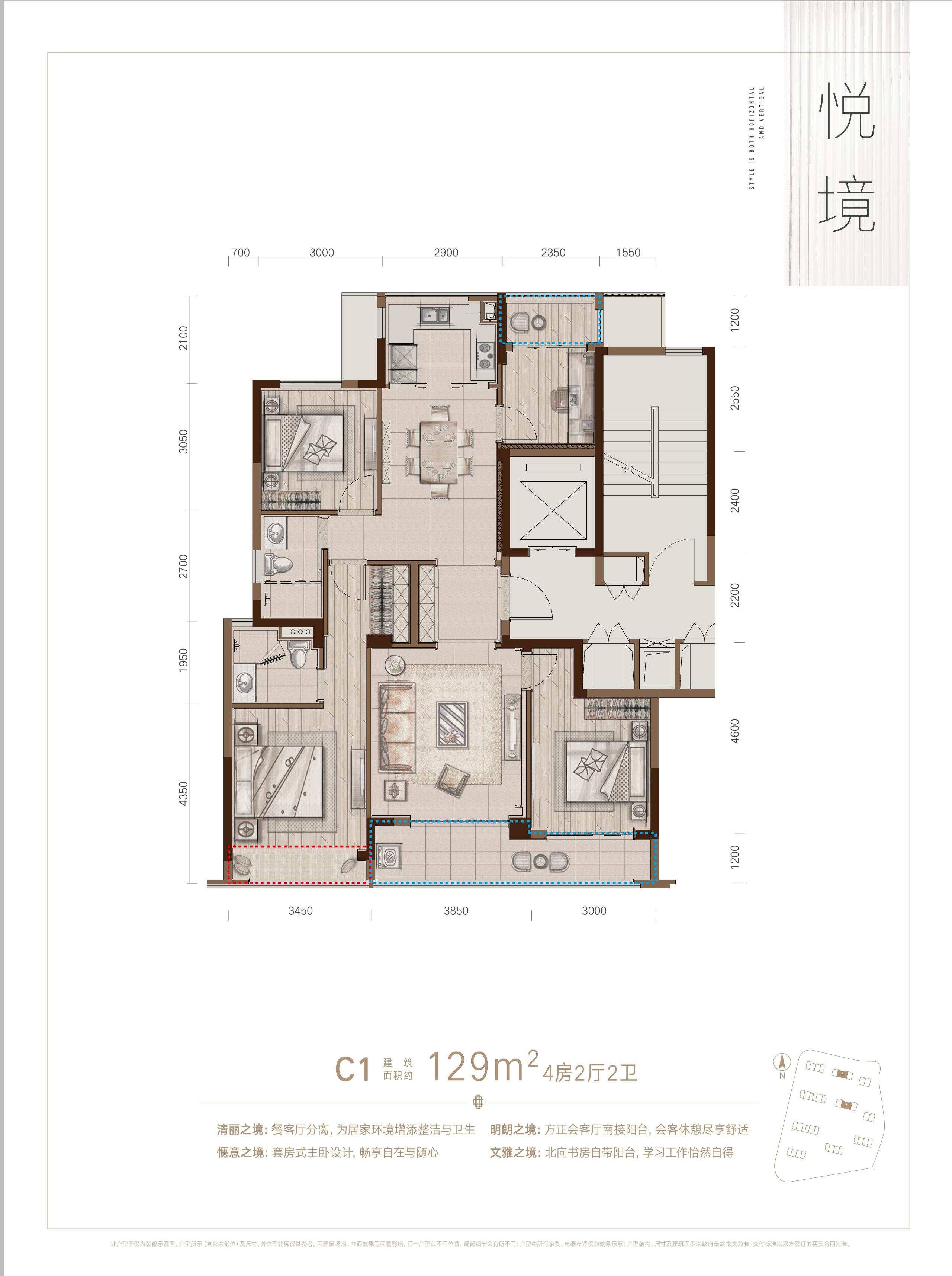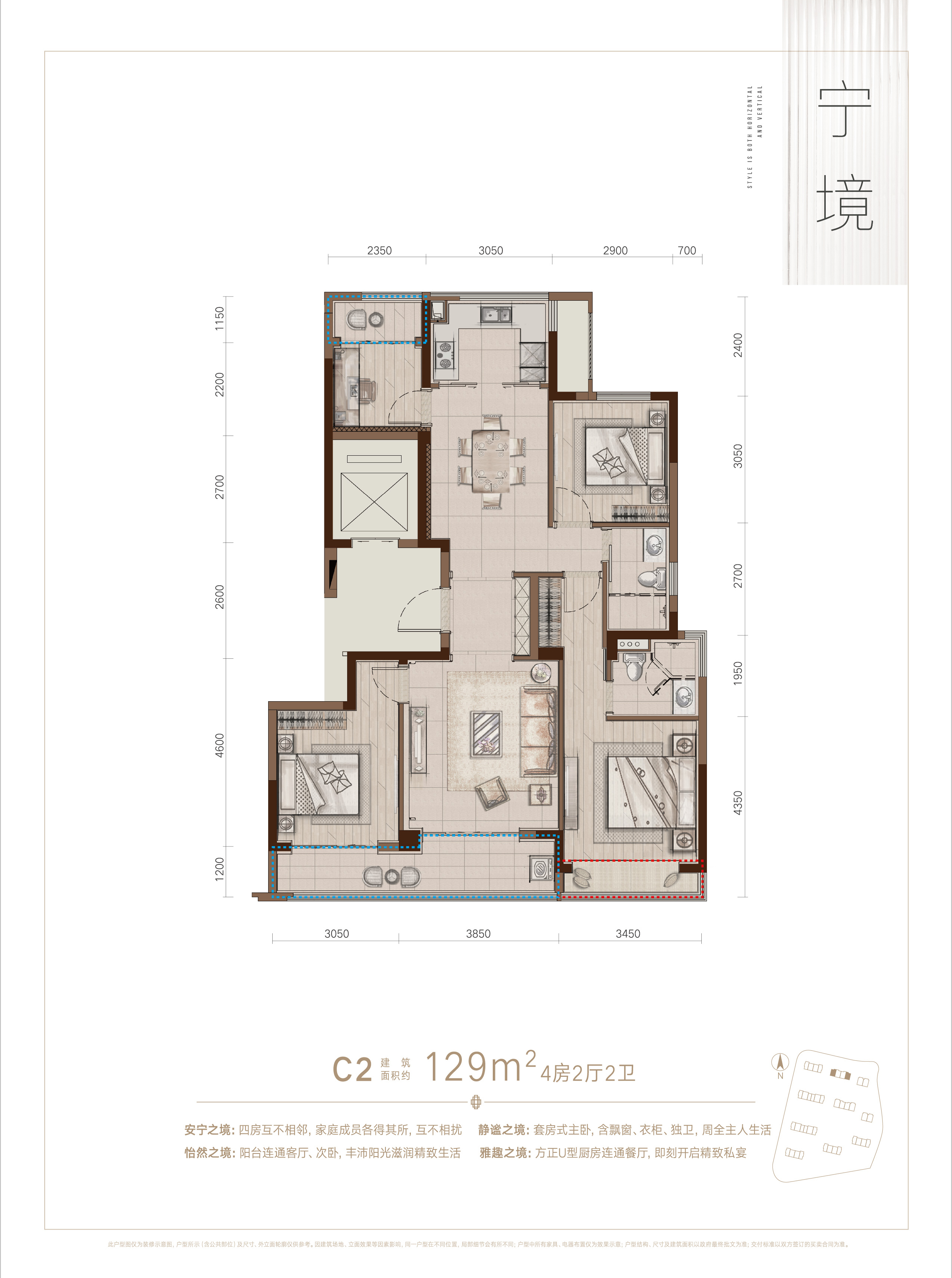 4室2厅2卫-10#建面约129㎡边套C2户型