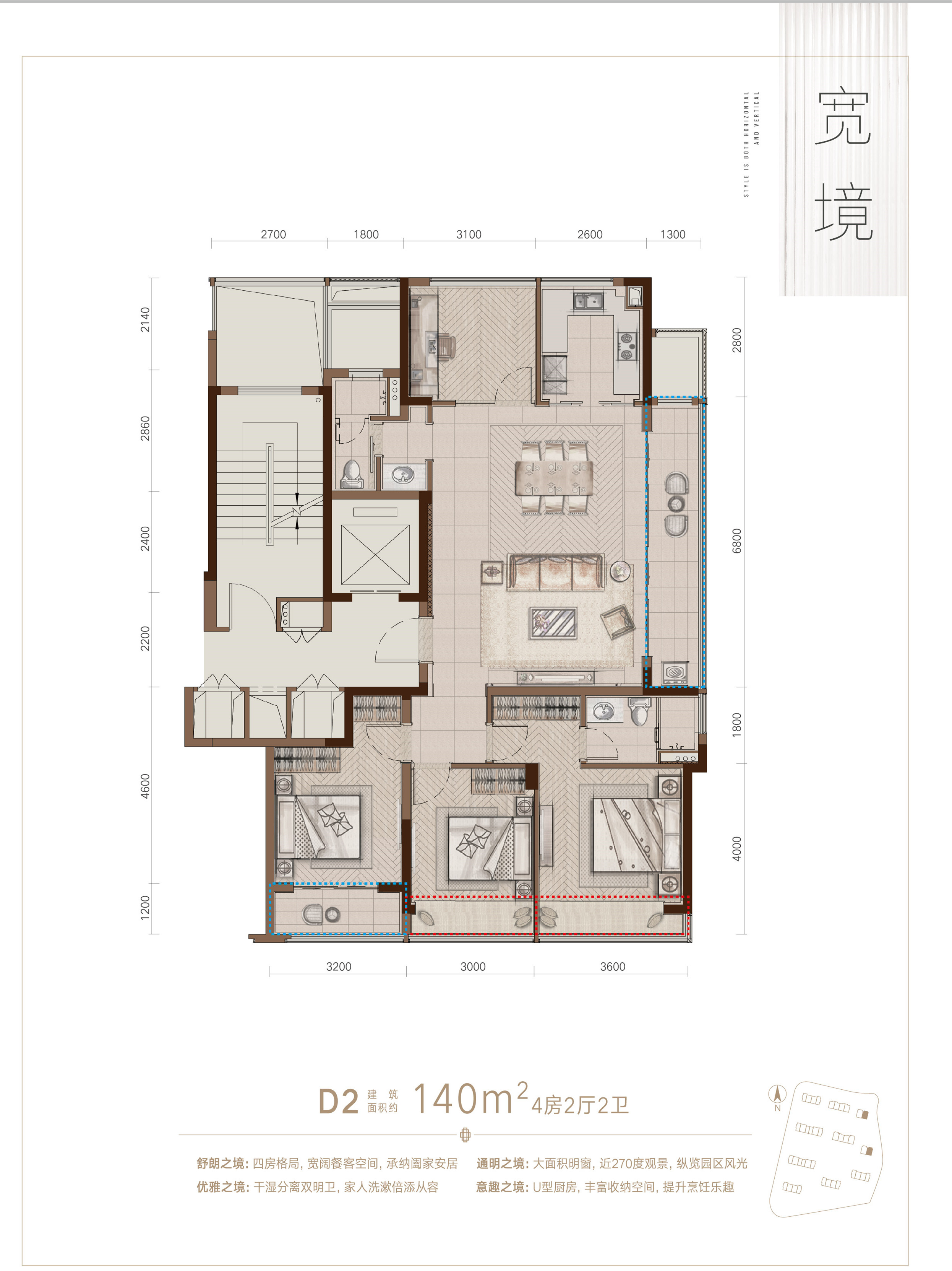 4室2厅2卫-6#9#建面约140㎡边套D2户型