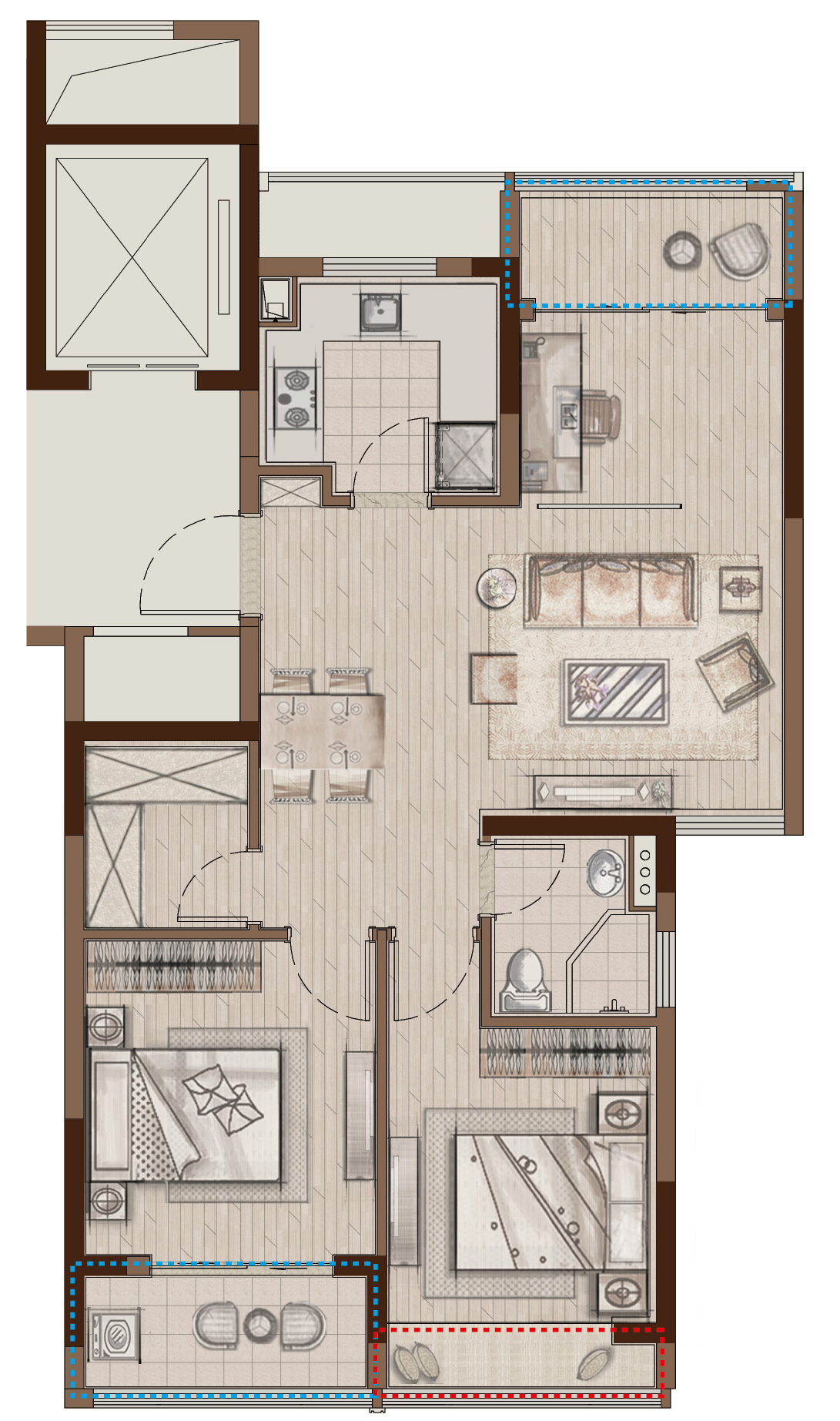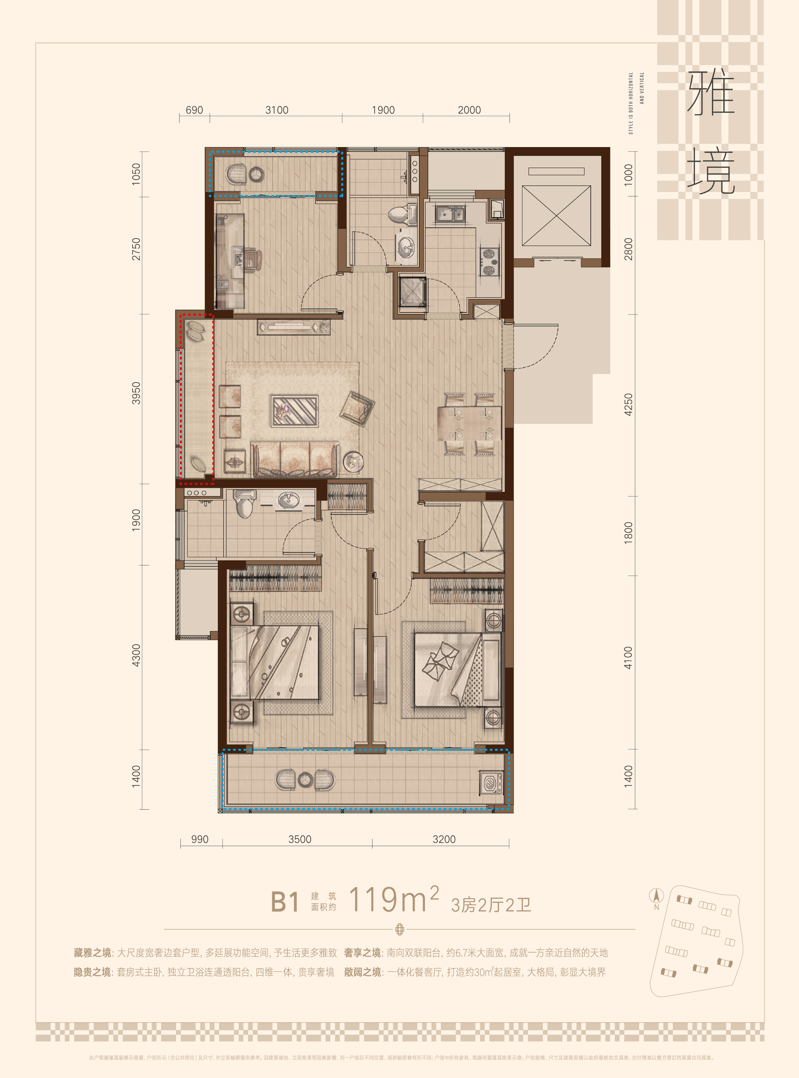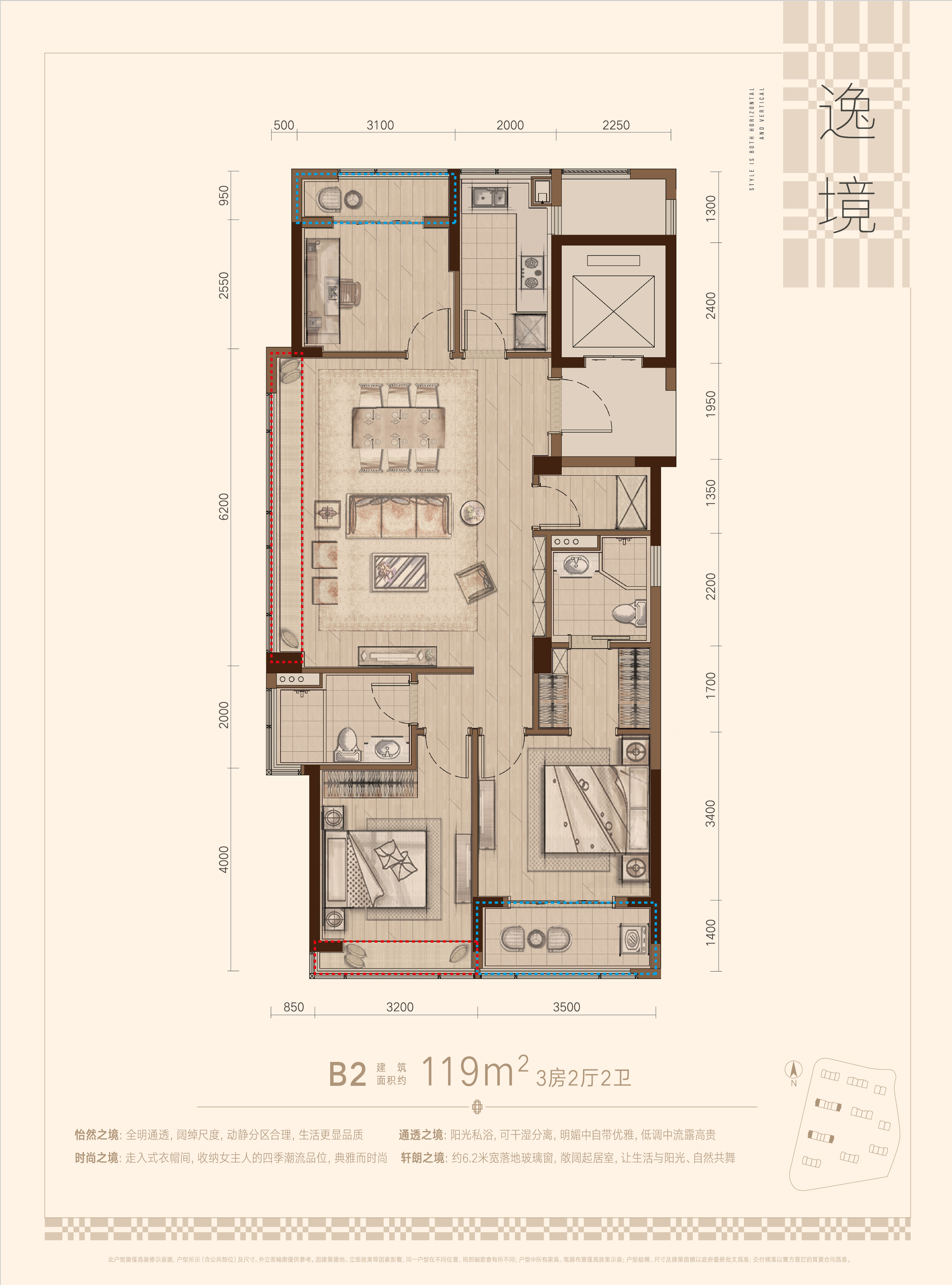 3室2厅2卫-4#7#建面约119㎡边套B2户型