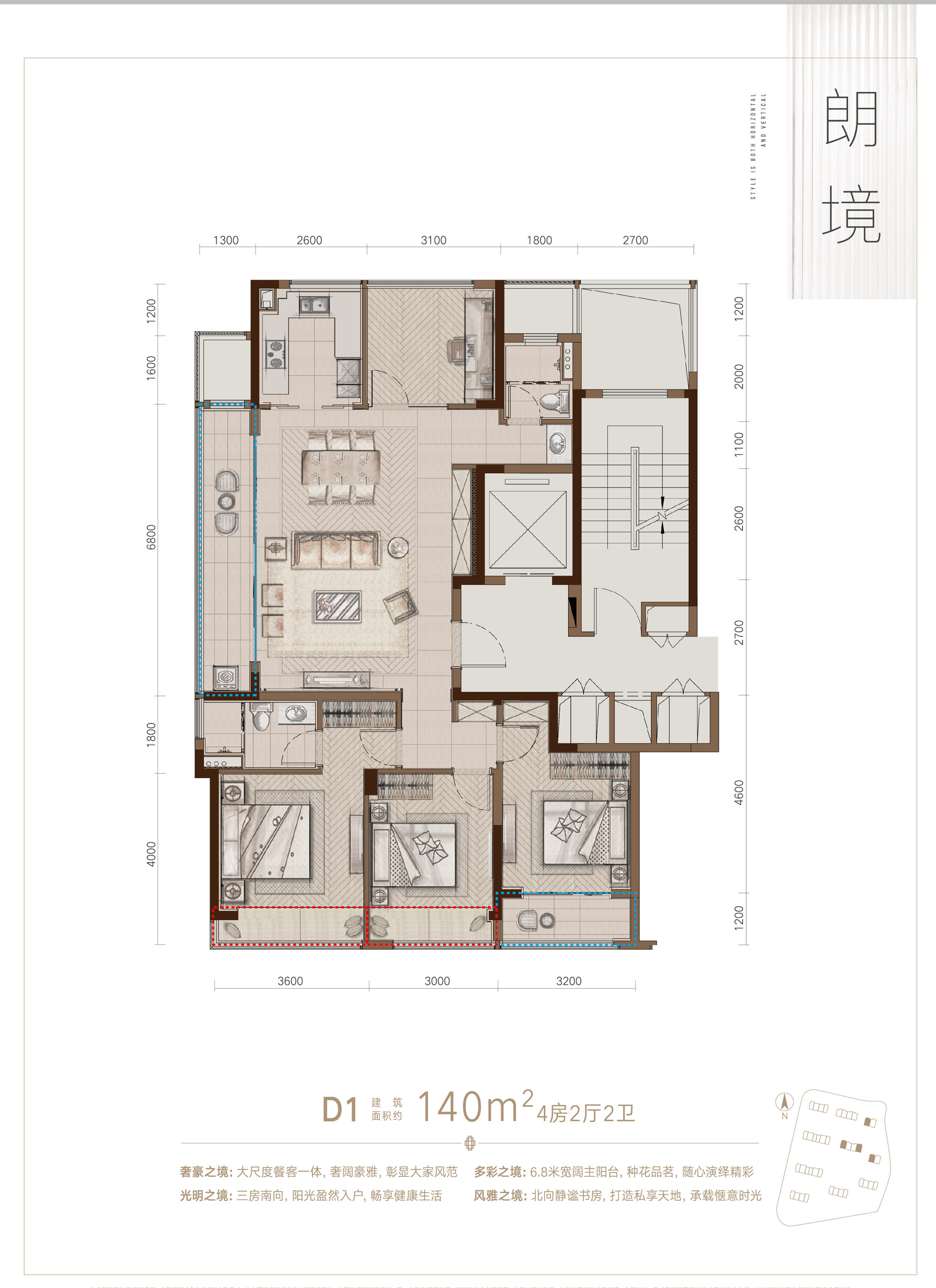 4室2厅2卫-6#7#9#建面约140㎡边套D1户型