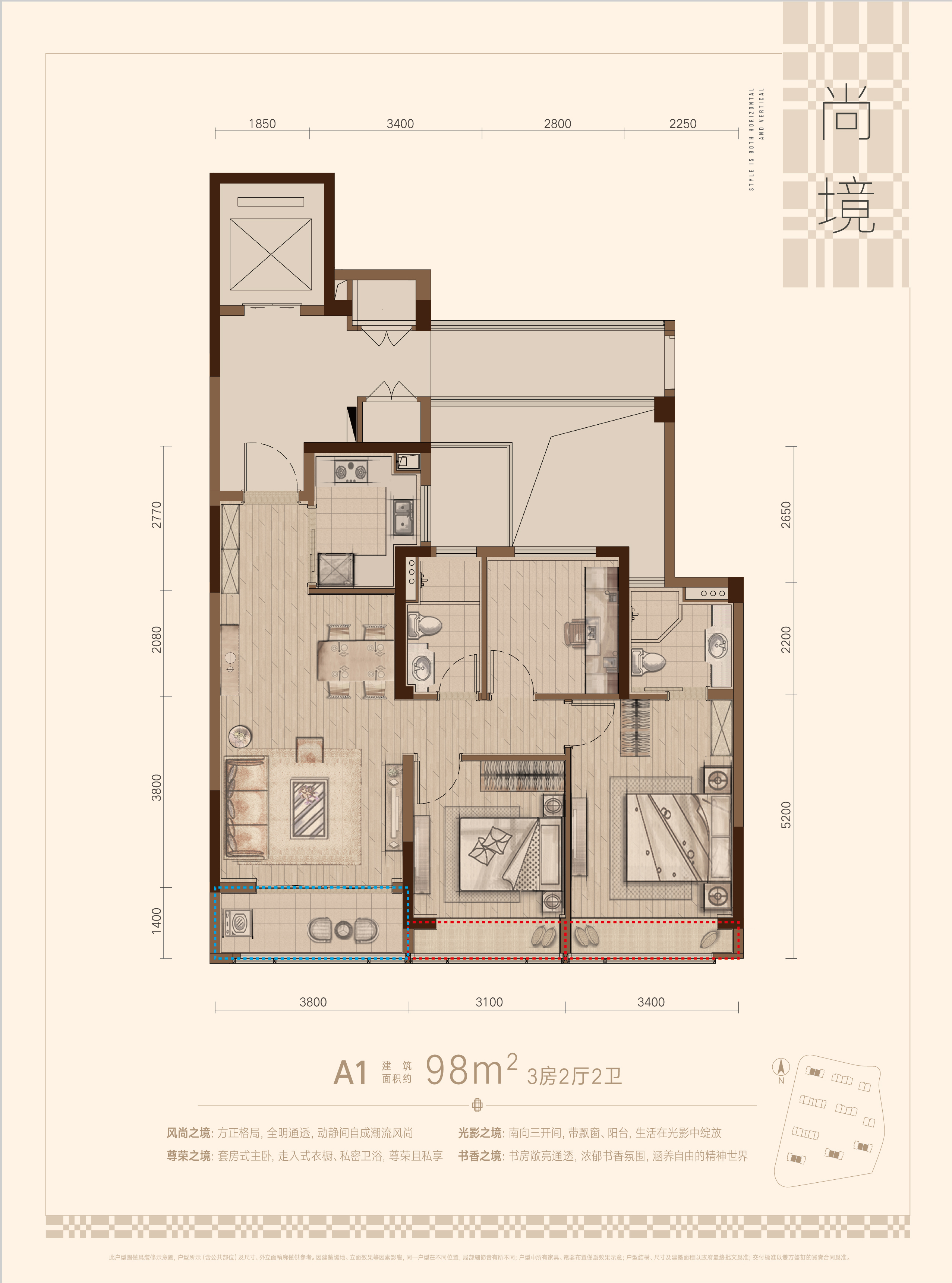 3室2厅2卫-1-3#11#建面约98㎡中间套A1户型