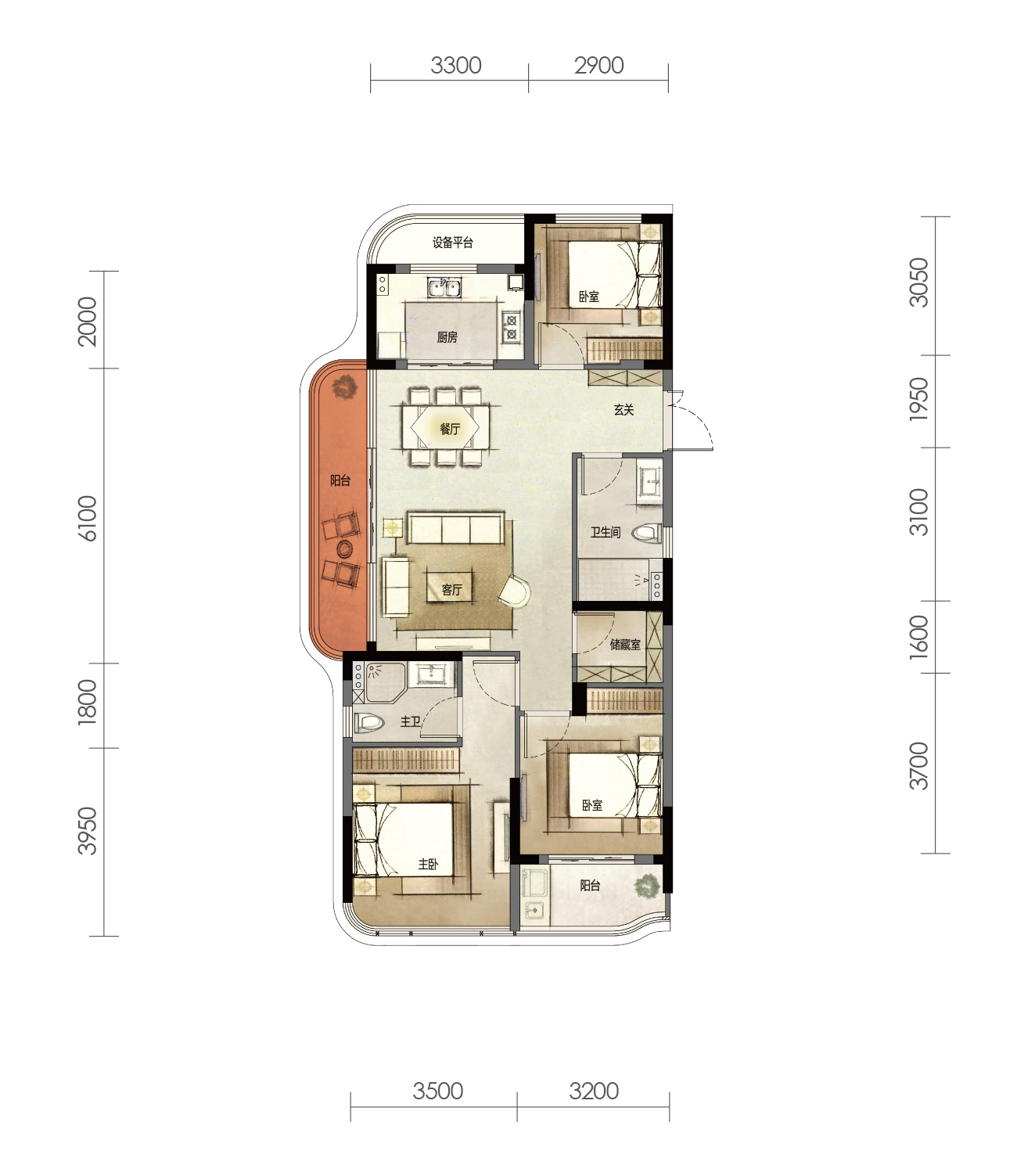 3室2厅2卫-18#20#建面140㎡中间套D3户型
