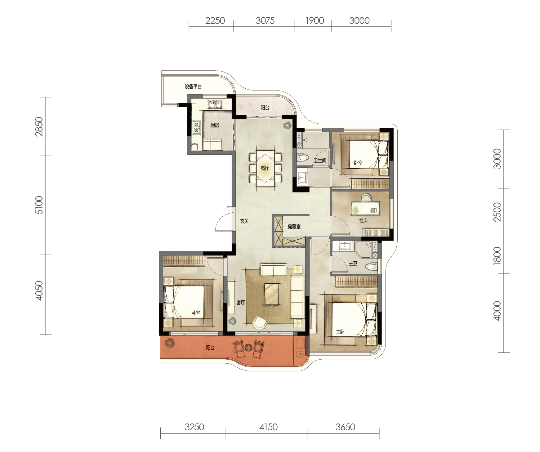 4室2厅3卫-24#25#等建面175㎡边套F4户型