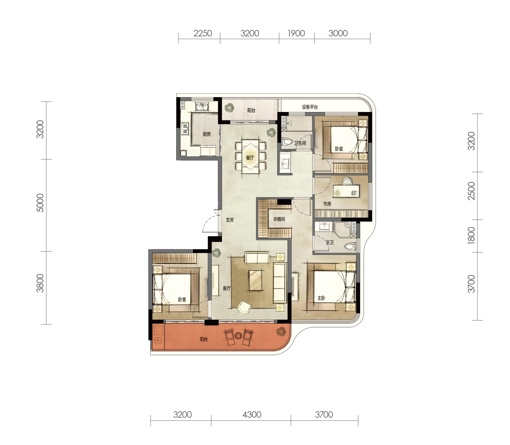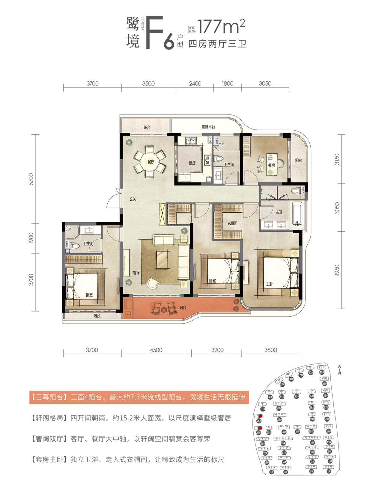 4室2厅3卫-22#26#建面约177㎡边套F6户型