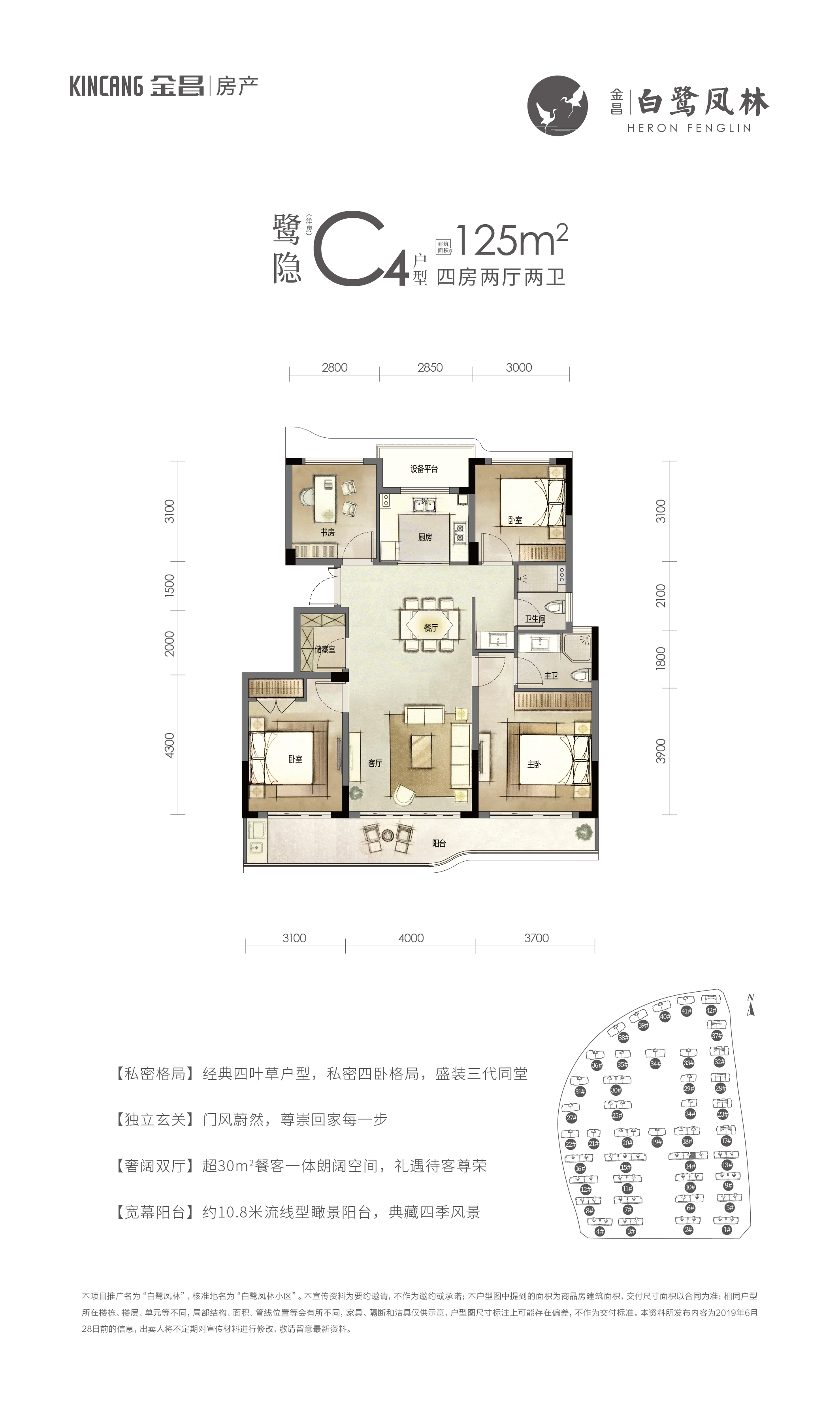 4室2厅2卫-14#建面约125㎡中间套C4户型