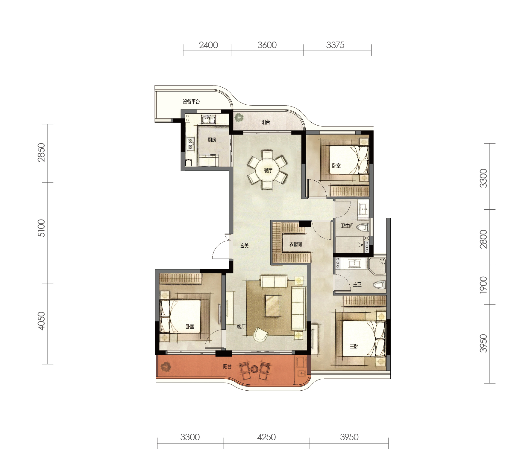 在售 户型方正 客厅朝南 主卧朝南 带衣帽间 主卧带卫