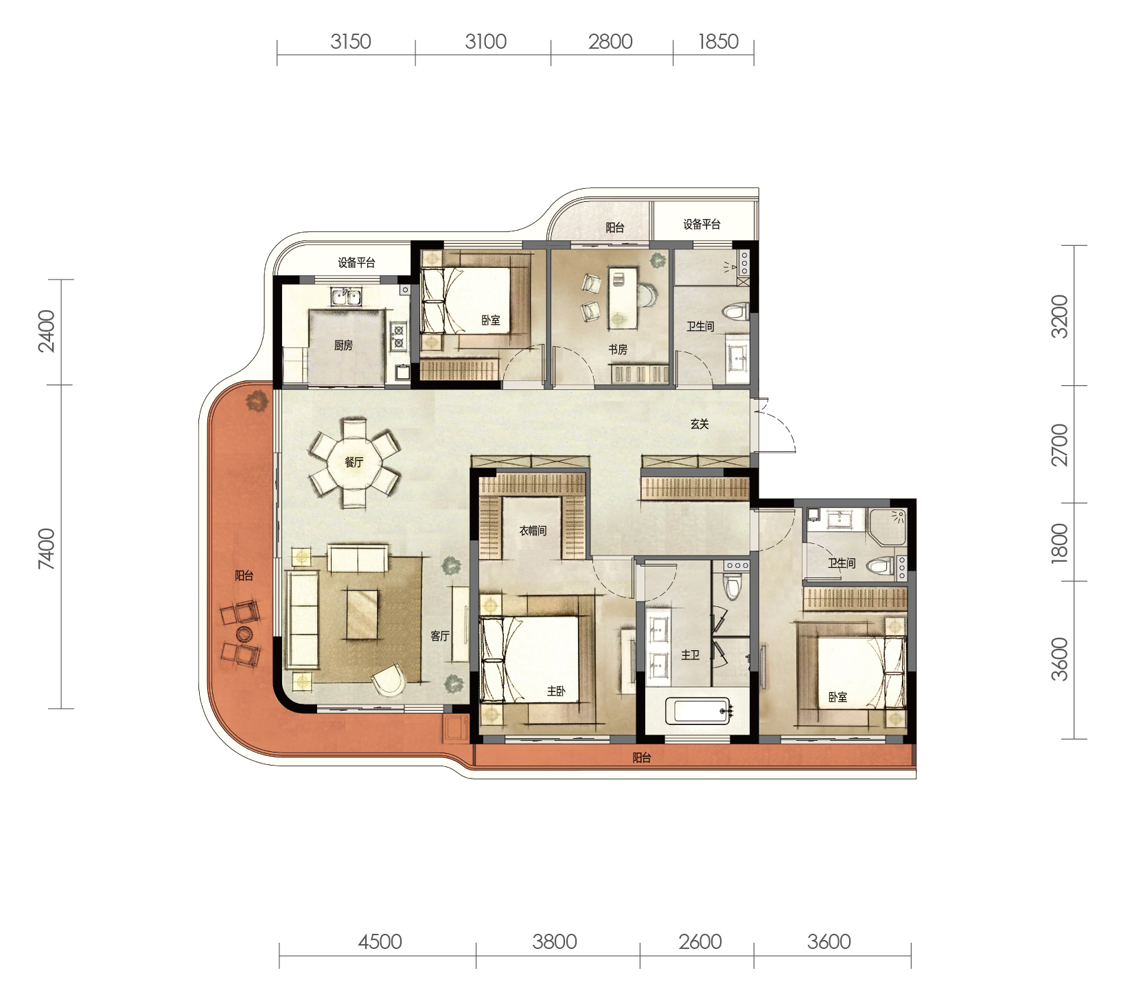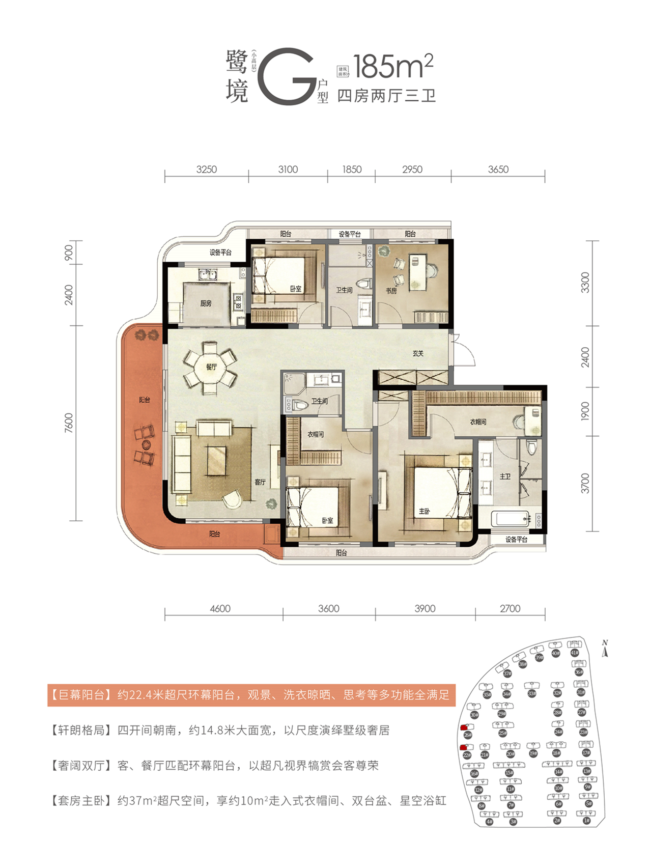 4室2厅3卫-22#26#建面约185㎡边套G户型