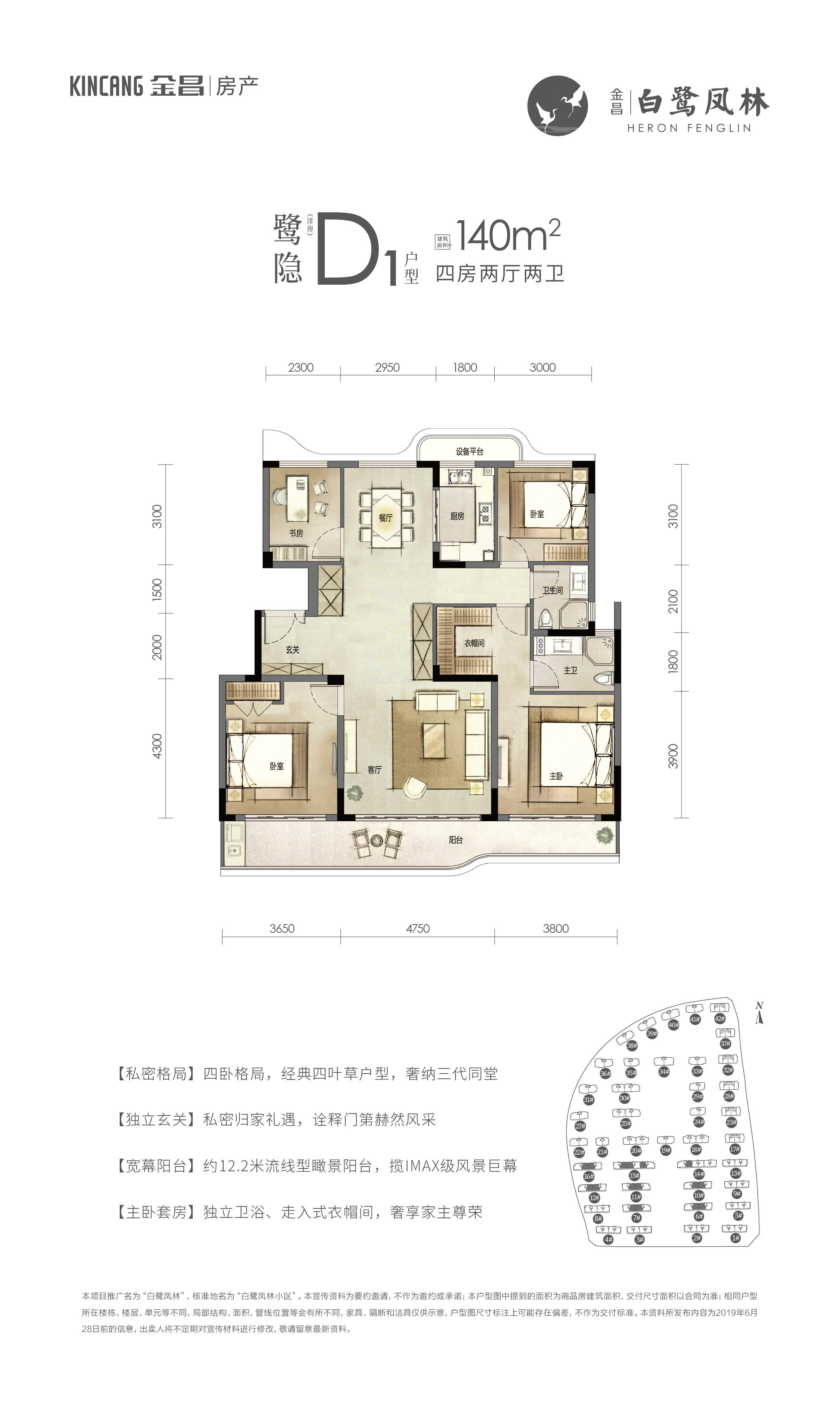 4室2厅2卫-18#20#建面约140㎡边套D4户型