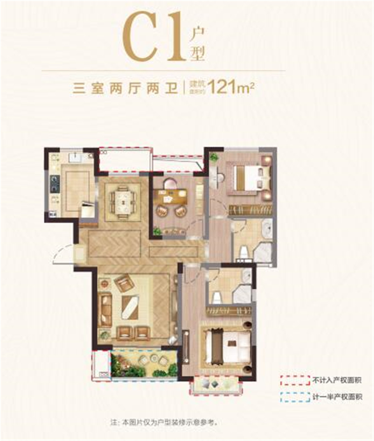 3室2厅2卫-建面约119㎡三室两厅两卫C1户型
