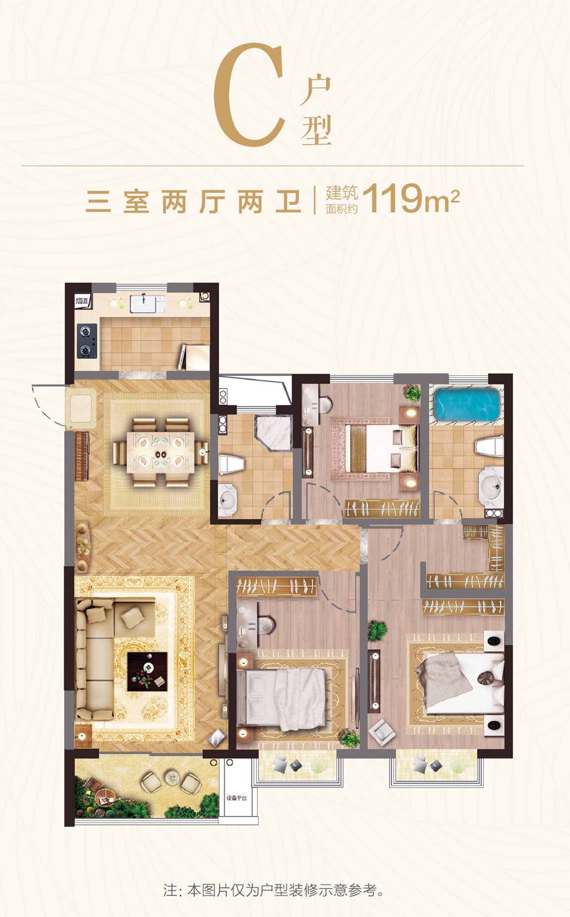 3室2厅2卫-建面约119㎡三室两厅两卫C户型