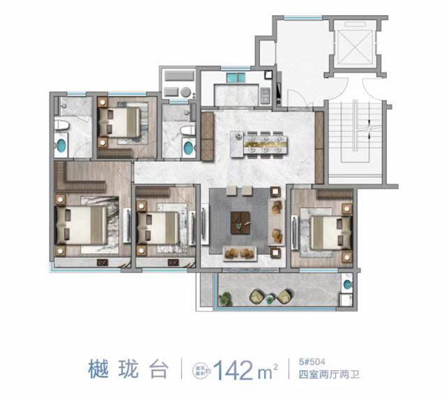 4室2厅2卫-2#5#等建面约142m²中间边套樾珑台