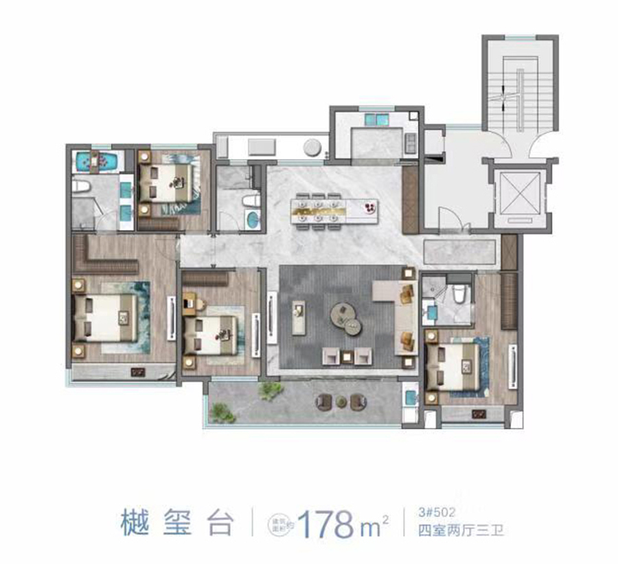 4室2厅3卫-3#7#8#建面约178m²边套樾玺台