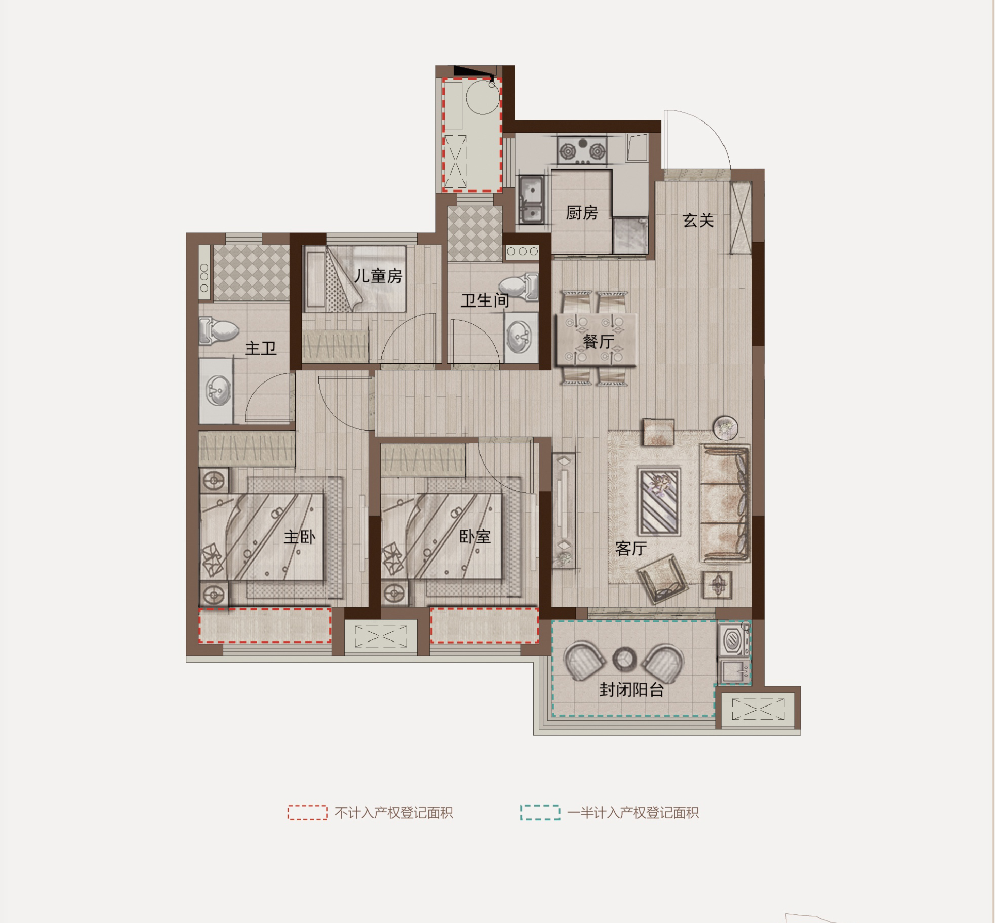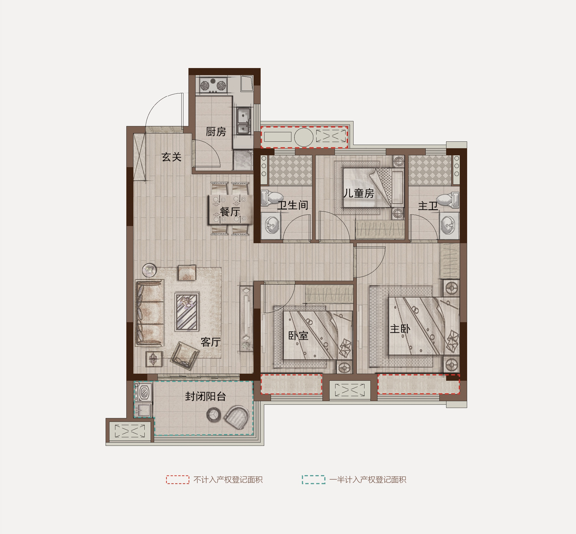 3室2厅2卫-1#2#5#7#8#等建面95㎡边套B1