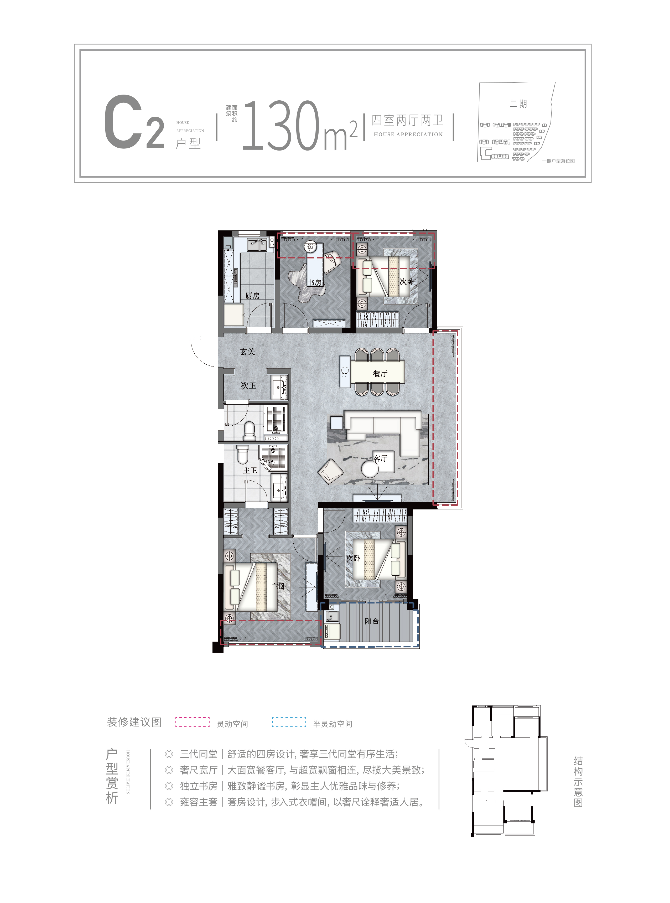 4室2厅2卫-建面约130㎡边套C2户型