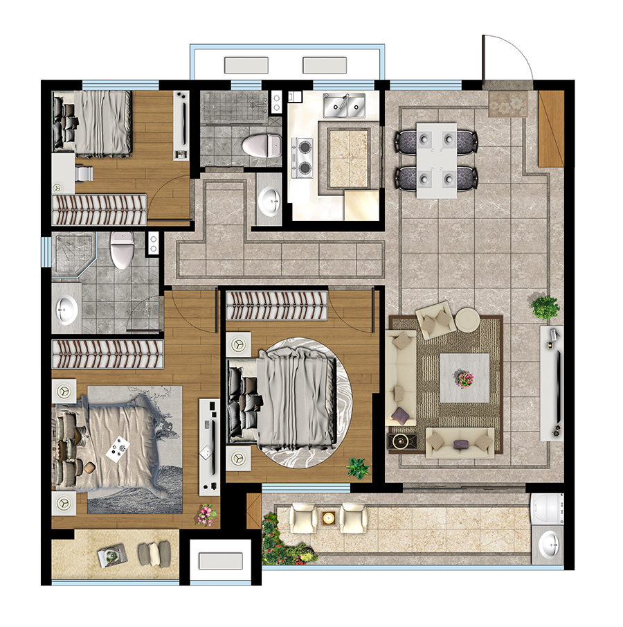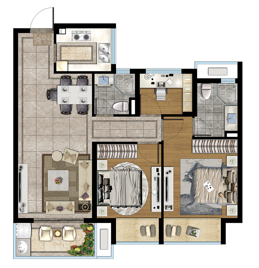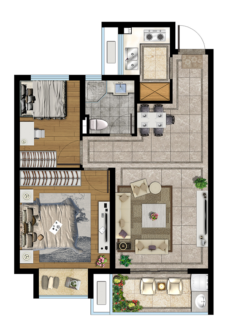 2室2厅1卫-2#楼中间套 建面约75㎡ A户型