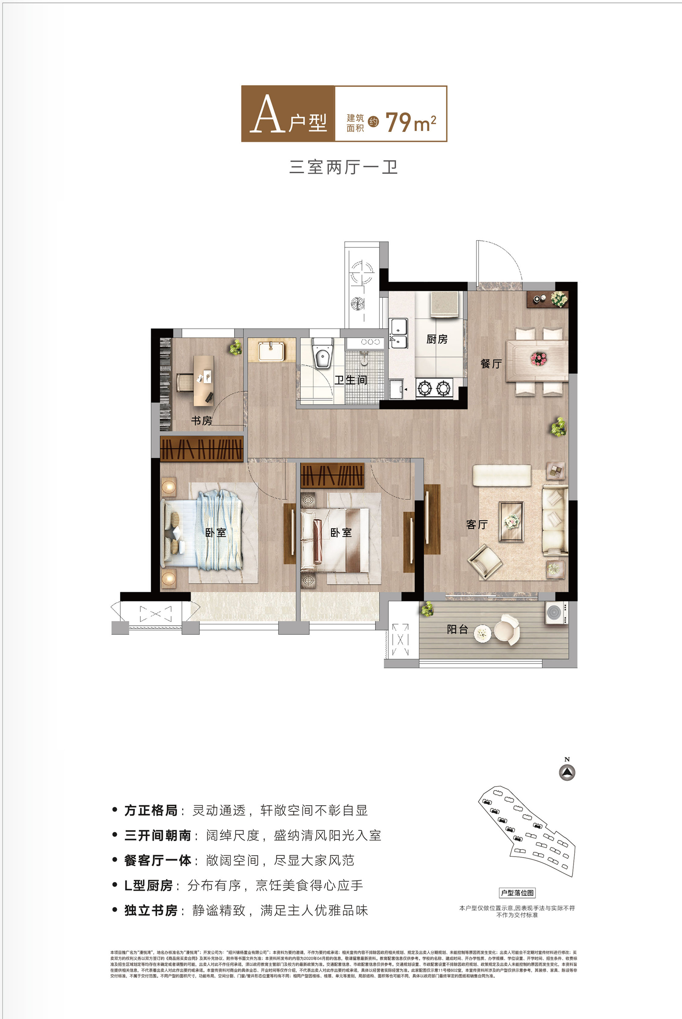 3室2厅1卫-11#12#等建面约79㎡中间套A户型