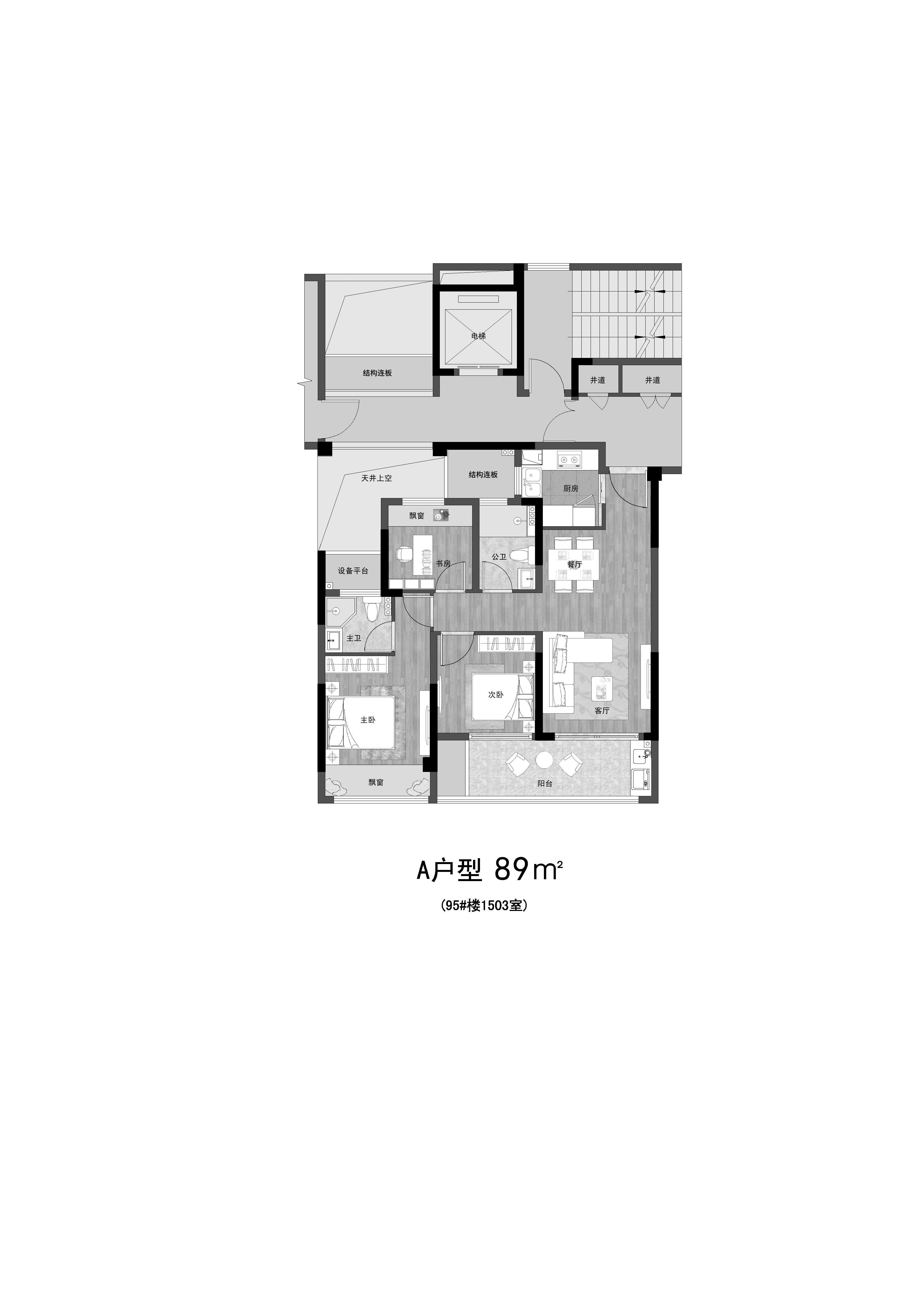 3室2厅2卫-108#107#建面约89㎡中间套户型