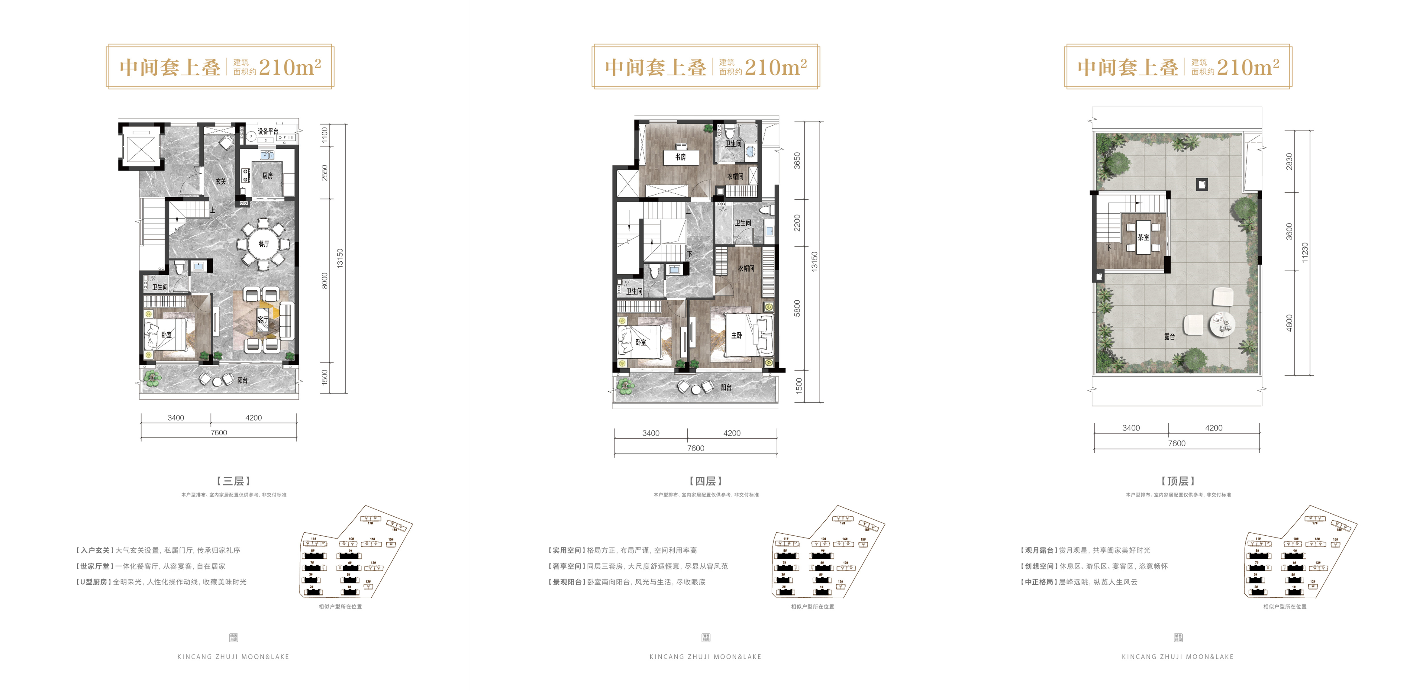 4室2厅4卫-1#2#等建面约210㎡上叠中间套户型