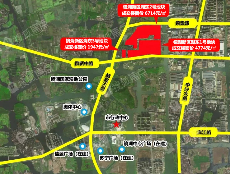 其中,镜湖新区湖东2号地块,东至观塘西路、兴中路,南至建贤路、观塘西路,西至问贤路,北至育贤路。