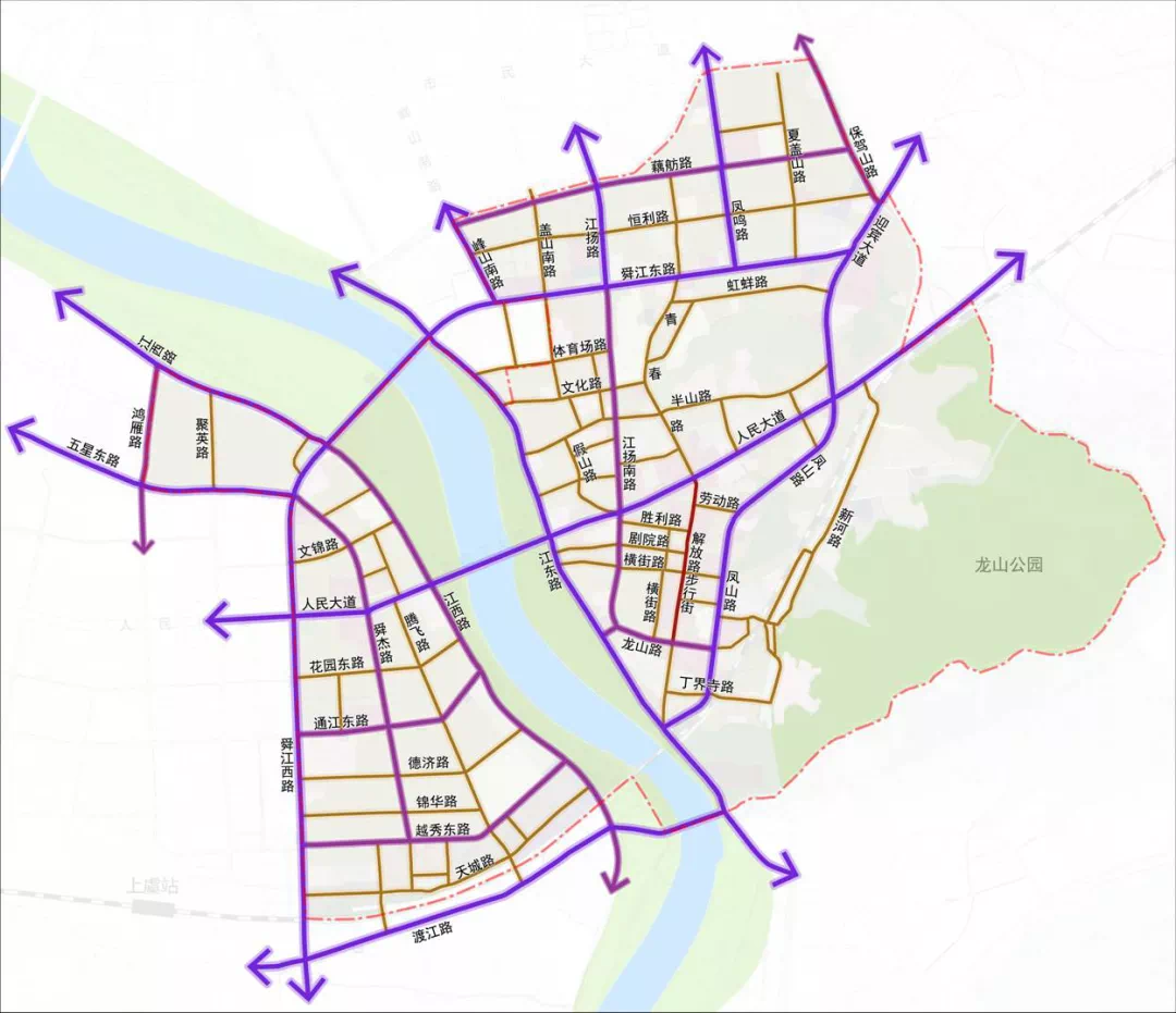 城区对外交通是城市交通动脉之一,通过整体协同,建设完善的外环通道、对外多通道,强化哑铃杆,疏通区域蜂腰,削弱老城区内部交通与外部交通的矛盾,将过境交通对城区内部交通的影响降到较低,以缓解老城区交通拥堵的状况。