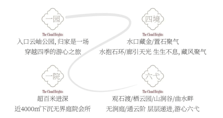 中铁·云岫曲江,以“天人合一、无界交融”理念,开创性打造“立体游弋”无界园林,由外至内,一园、一院、四境、六弋层层迭进,打造“无界天地任逍遥”的栖心世界。
