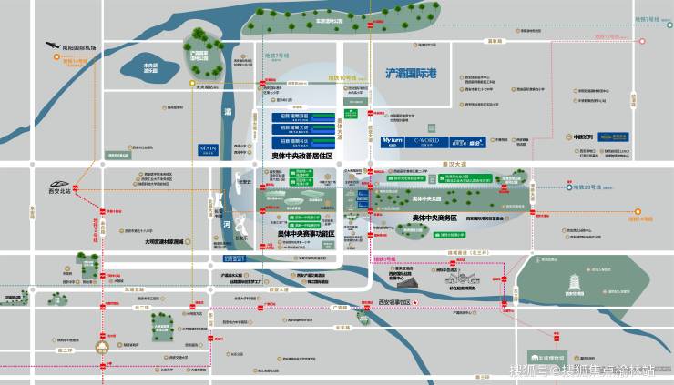 (3)地标集群:西安奥体中心、西安国际会展中心、西安国际会议中心、长安乐、长安书院、元朔大桥、长安云、长安塔