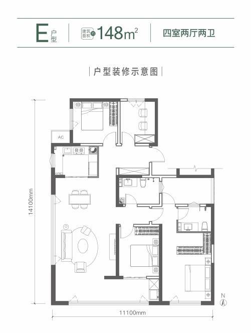 建筑面积约148㎡ 四室两厅两卫