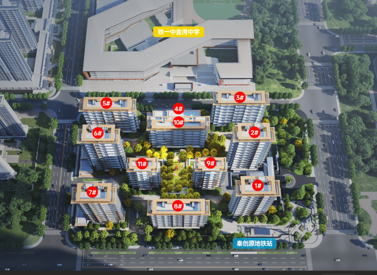 楼盘地址:能金能源二路(铁一金湾中学南侧,秦创原地铁口A口)
