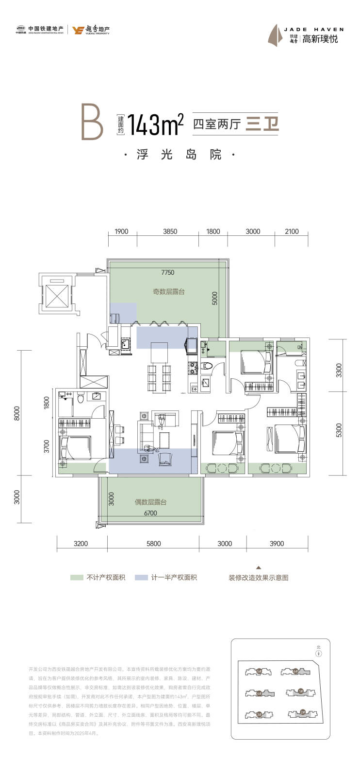 143洋房户型,四房两厅三卫