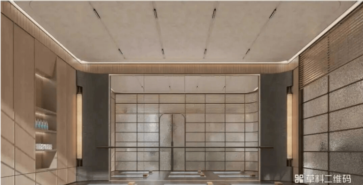 下沉式禅意庭院,取自王维《青溪》中"每逐青溪水"流水连廊串联会所各处在光影水韵间演绎当代名仕的诗意闲雅